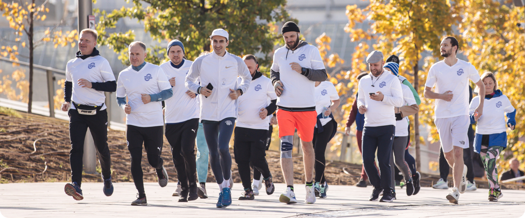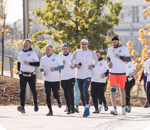 Мы проводим совместные тренировки, проводим тематические пробежки и участвуем в городских забегах.